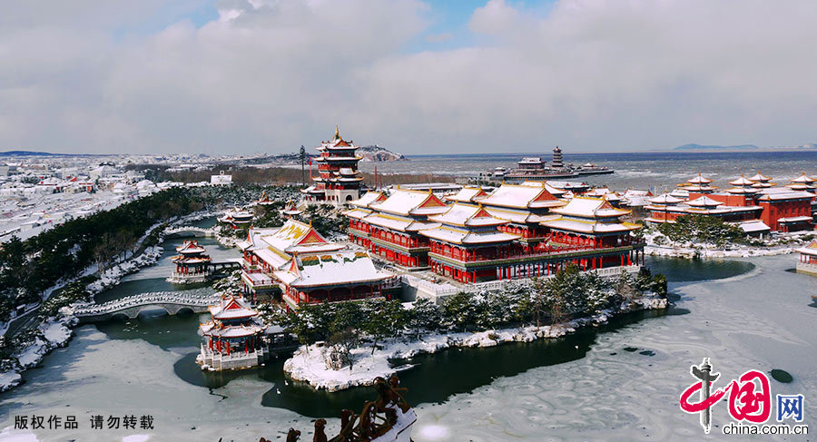 La neige a recouvert le mont Penglai d'un beau manteau blanc.