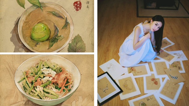 La jeune dessinatrice Li Xiaolin nous explique avec ses œuvres ce que les Chinois mangent à chaque période solaire : des nouilles froides pour l'établissement de l'été, des raviolis pour le solstice d'hiver, du riz aux légumes pour le petit froid, etc.