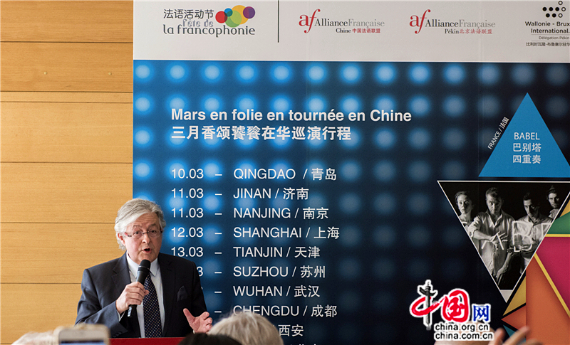 - Du 10 au 30 mars, plus de 30 concerts seront organisés à travers 14 villes en Chine. Le public chinois aura la chance de découvrir à cette occasion quatre noms de la scène francophone pop, punk, jazz et hip-hop, à savoir : Nicolas Michaux de Belgique, Fabian Tharin de Suisse, Babel de France et Félix Dyotte du Québec.
