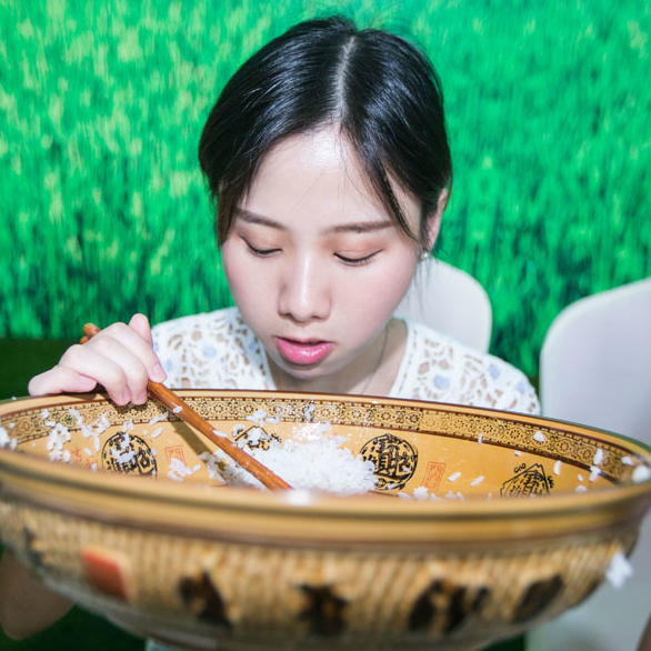 Elle a impressionné les autres compétiteurs en avalant facilement 4 kilos de riz.
