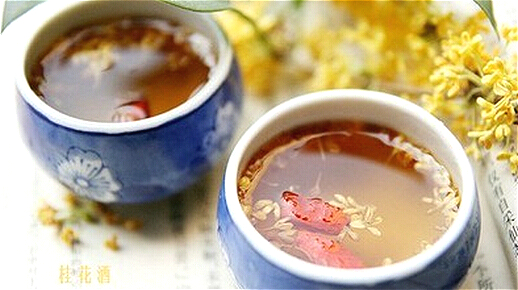在八月桂花盛开的季节中,选择含苞待放的花朵,醅酿成酒,入坛密封三年,便成佳酿.桂花酒色泽浅黄,桂花清香突出,并带有山葡萄的特有醇香,酸甜适口,醇厚柔和,余香长久.