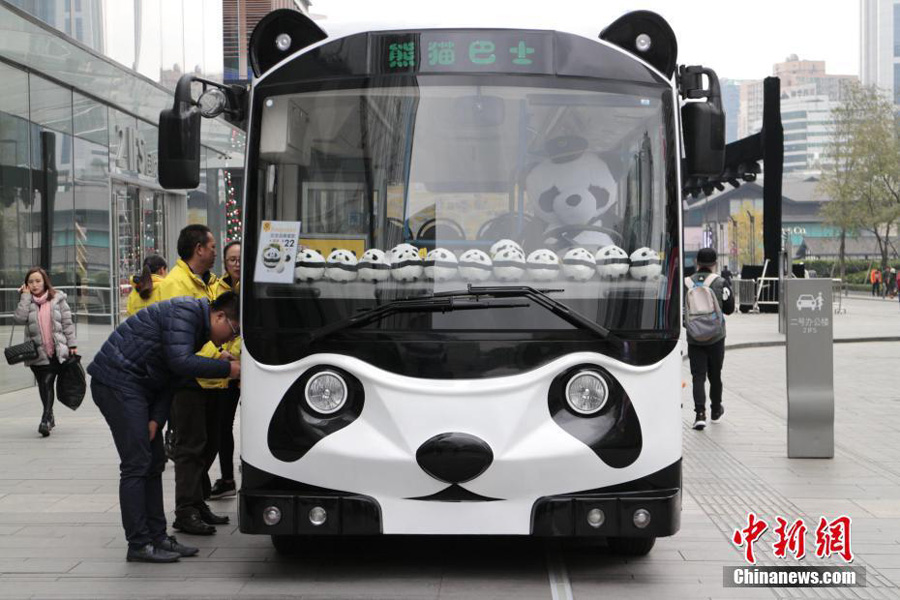 Un « bus panda » est apparu à Chengdu et est aussitôt devenu une attraction. Le bus sert aussi de billetterie pour une visite qui passe par un centre de reproduction des pandas de la ville. Le conducteur a même été remplacé par une poupée panda !