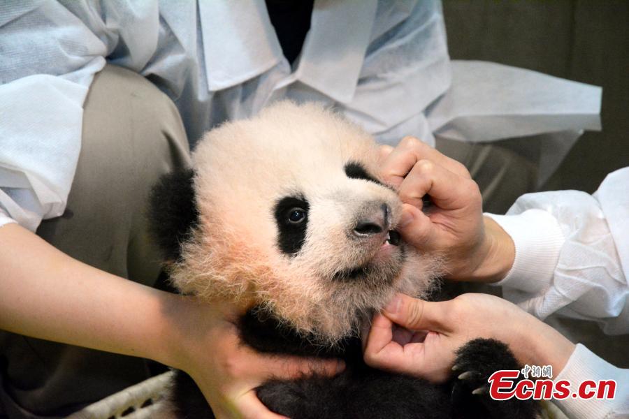 Le bébé panda nommé Xiang Xiang, dont la mère est Shin Shin, vu au jardin zoologique d'Ueno, à Tokyo. Le gouvernement métropolitain de Tokyo a annoncé lundi que le bébé panda géant né en juin dans ce zoo du centre de Tokyo s'appelait Xiang Xiang. Photo publiée par la Tokyo Zoological Park Society le 20 septembre 2017.