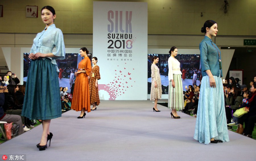 Le salon international de la soie Silk Suzhou 2018 s'est tenu à Suzhou, dans la province du Jiangsu (est de la Chine), le 6 avril. L'événement a réuni plusieurs designers de différents pays asiatiques, dont la Chine, la Malaisie, la Thaïlande et l'Indonésie. (Photo / IC)