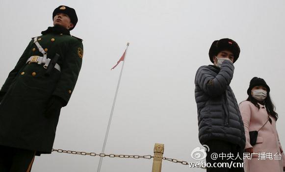 - Alors que la capitale chinoise était en alerte rouge à la pollution, les policiers chinois de la place Tian'anmen portaient hier des masques pour la toute première fois. Des gardes armés surveillent la célèbre place tous les jours.