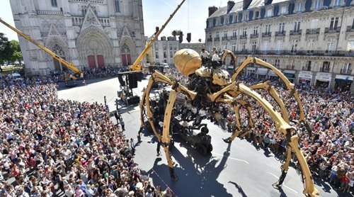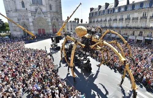 - Le 8 juillet, l'araignée mécanique géante Kumo est apparue dans les rues de Nantes devant des milliers de spectateurs. Créé à Nantes par la compagnie La Machine en 2009, c'est la première fois que cet insecte mécanique faisait une sortie dans son berceau nantais.