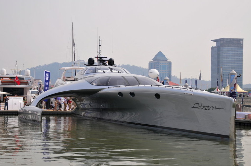 Adastra, le yacht « le plus étonnant du monde », fait 42,5 mètres de long et sa construction a coûté 15 millions de dollars. C'est sans aucun doute le plus éblouissant des bateaux présentés au Salon international du yacht de Guangzhou, qui a débuté le 12 octobre dans la baie de Nansha.