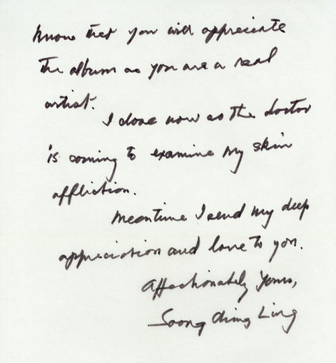« Tante Soong nous faisait envoyer la revue régulièrement. Dans sa vieillesse, elle demandait à sa secrétaire d'écrire les lettres qui nous étaient destinées, mais elle insistait toujours pour écrire elle-même l'adresse sur l'enveloppe et envoyer une revue de La Chine en construction. Ces courriers sont les témoins de notre amitié. »