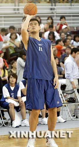 Yao Ming, fameux basketballeur chinois de NBA, participe à un match amical à l'Université Taïbei