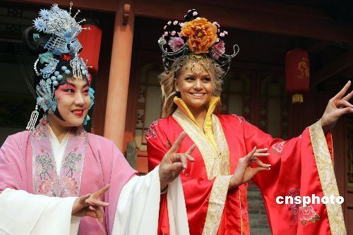 « Miss Model of the world » apprennent l'opéra local du Shanxi