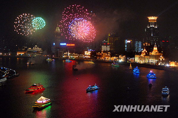 Le 28 septembre au soir, une croisière de bateaux décorés de lumières colorées et des tirs de feux d'artifice ont eu lieu sur le fleuve Huangpu à Shanghai, contribuant à l'atmosphère festive.