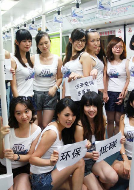 14 belles jeunes femmes enlèvent leurs pantalons dans le métro de Shenzhen