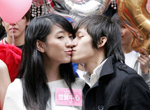 Hong Kong : les amoureux s'embrassent en attendant la Saint-Valentin (1)