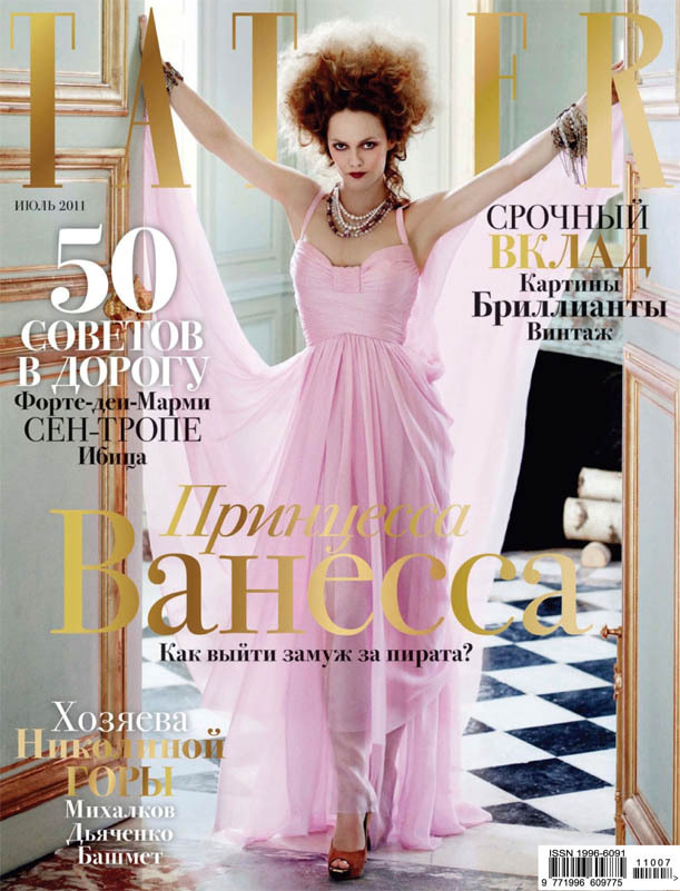 Vanessa Paradis, chanteuse française et épouse de l'acteur hollywoodien Johnny Depp, a fait la couverture du magazine Tatler Russia pour son numéro de juillet. Vêtue d'une robe Channel, Vanessa Paradis y incarne la beauté des femmes de cour.