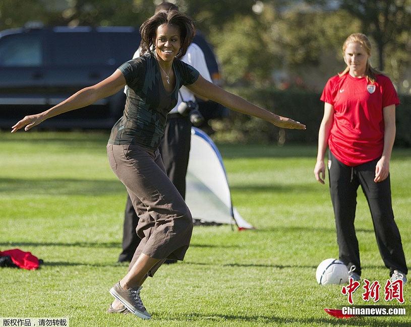 Michelle Obama joue au football sur le terrain de la Maison-Blanche