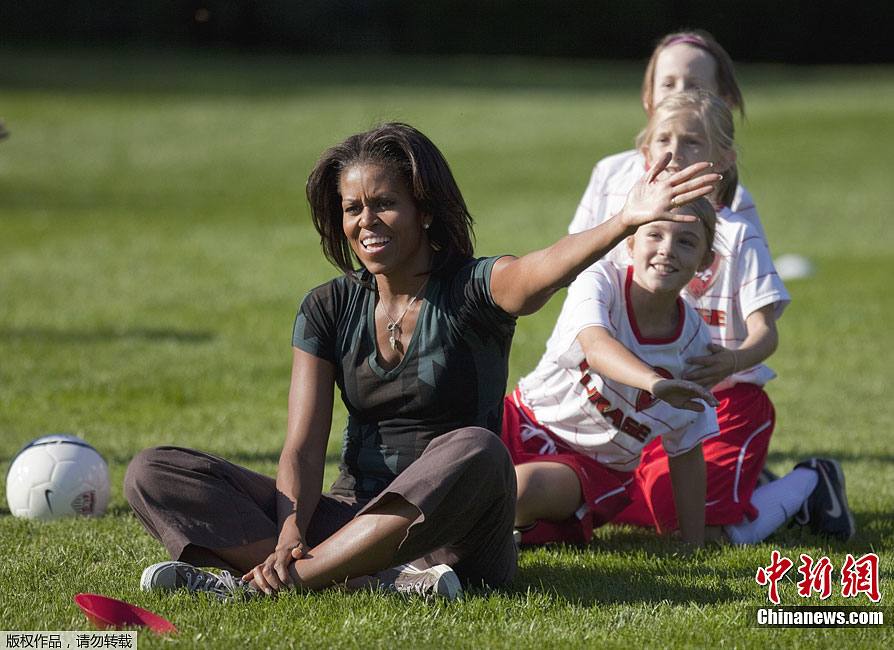 Michelle Obama joue au football sur le terrain de la Maison-Blanche