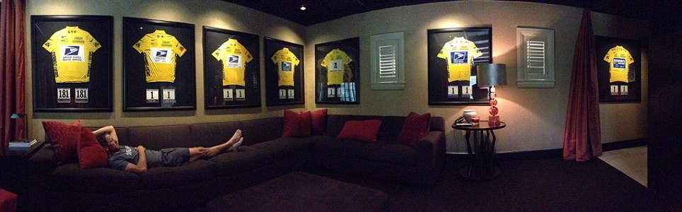 据英国《每日邮报》11月12日报道,近日,41岁的美国自行车运动员兰斯•阿姆斯特朗为反击其深陷的兴奋剂丑闻,在微博上上传了他躺在沙发上轻松自在的照片。沙发周围的室内墙壁上还挂着他在环法自行车赛中穿过的黄色运动衫的照片.