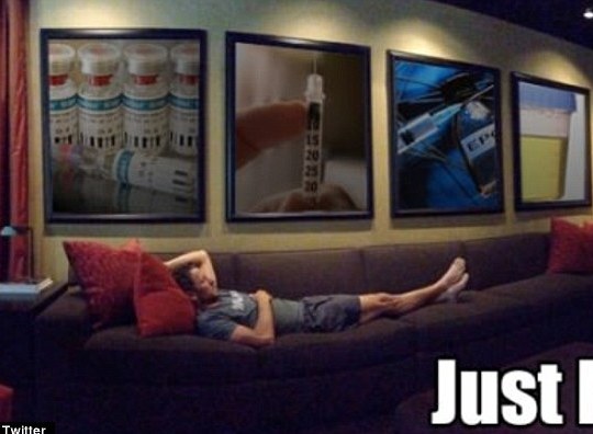 据英国《每日邮报》11月12日报道,近日,41岁的美国自行车运动员兰斯•阿姆斯特朗为反击其深陷的兴奋剂丑闻,在微博上上传了他躺在沙发上轻松自在的照片。沙发周围的室内墙壁上还挂着他在环法自行车赛中穿过的黄色运动衫的照片.