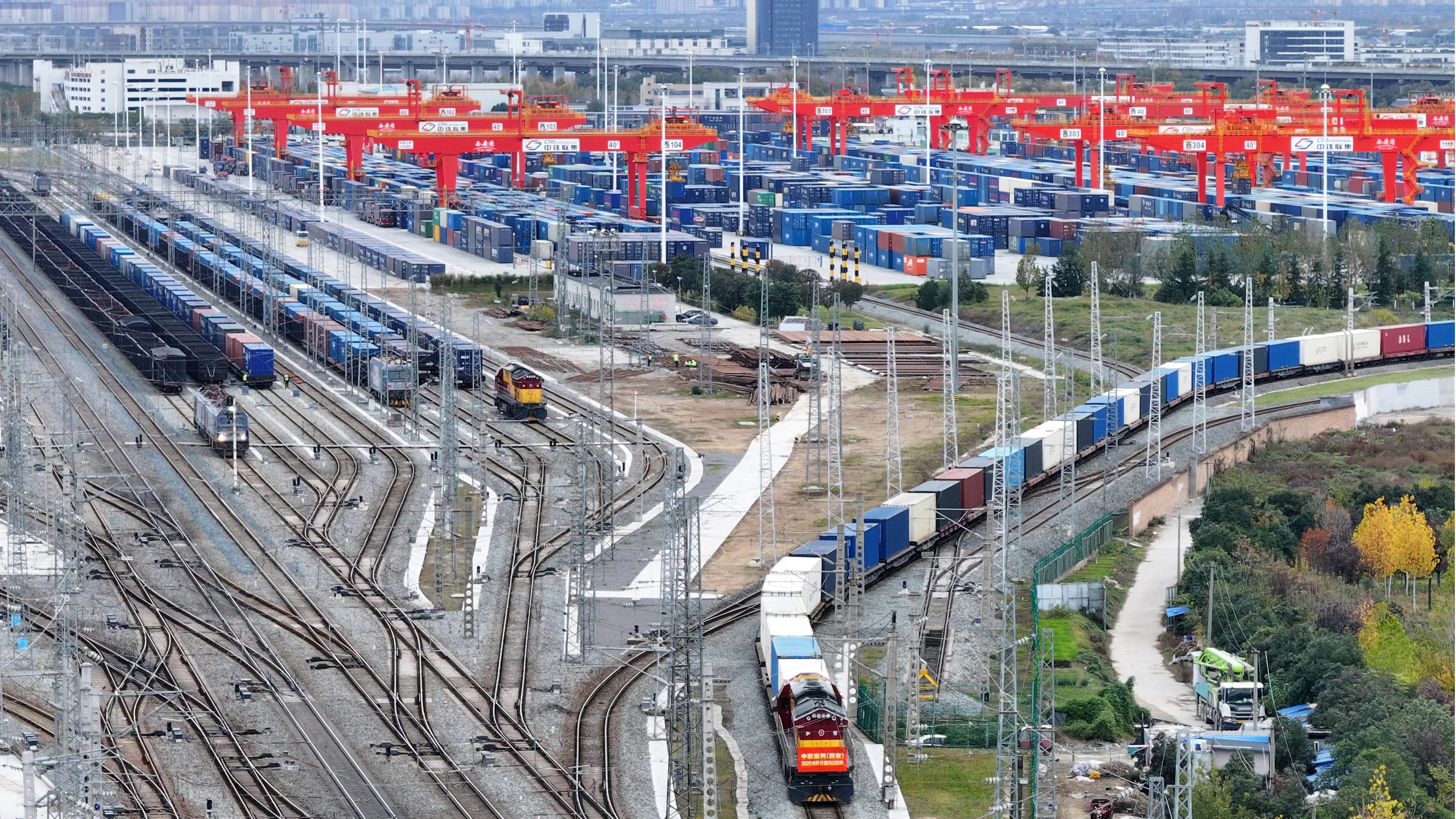 Un train de fret intermodal rail-mer transportant des VEN quitte Chongqing pour le Moyen-Orient