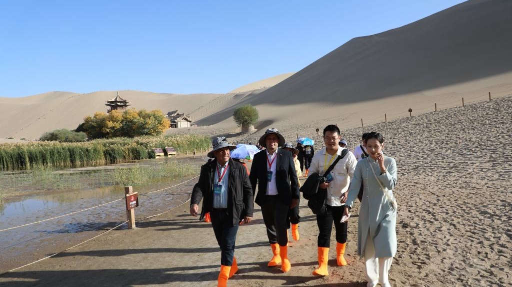 Gansu : des invités internationaux visitent des sites culturels à Dunhuang