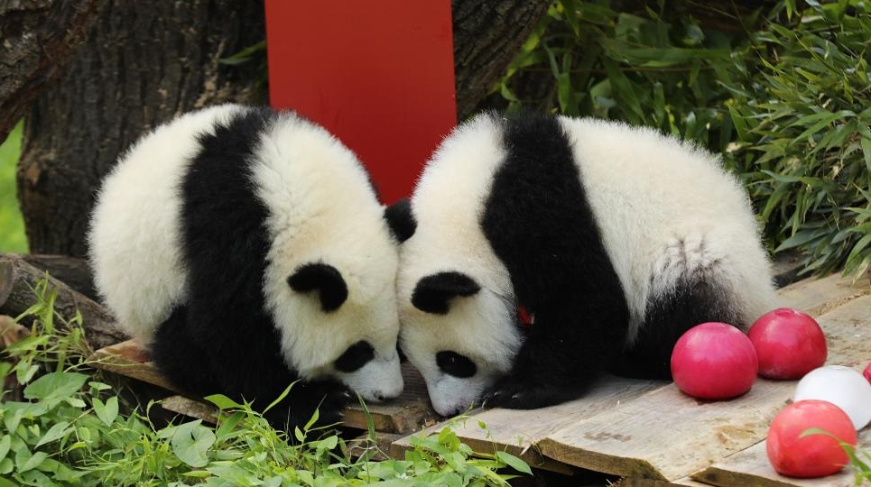 Le deuxième binôme de pandas, des jumelles nées en Allemagne, fête son premier anniversaire (REPORTAGE)