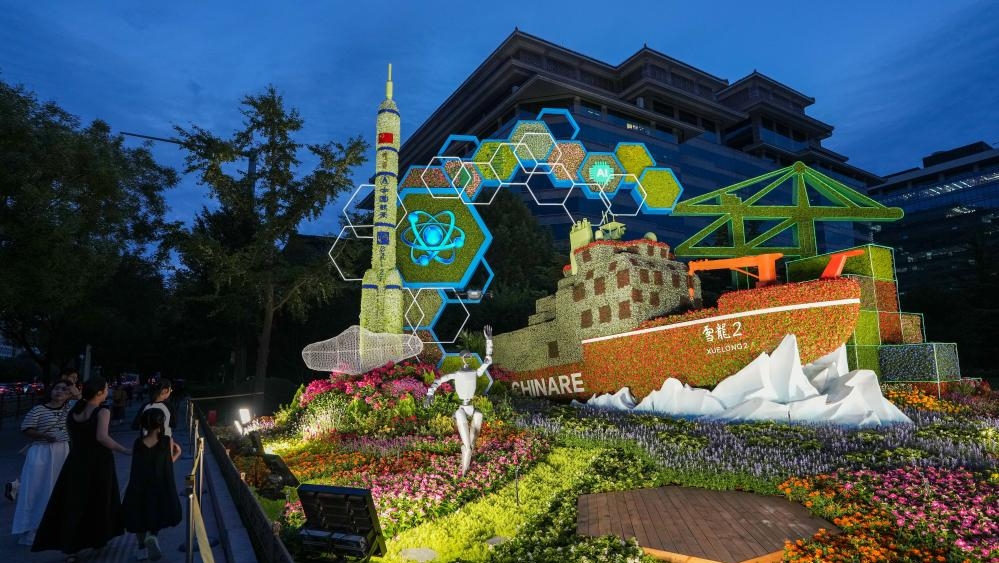 Des parterres de fleurs thématiques embellissent l'avenue Chang'an à Beijing