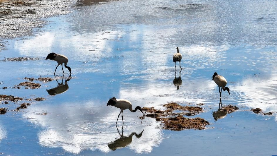 Sichuan : des grues à cou noir dans les prairies de Hongyuan