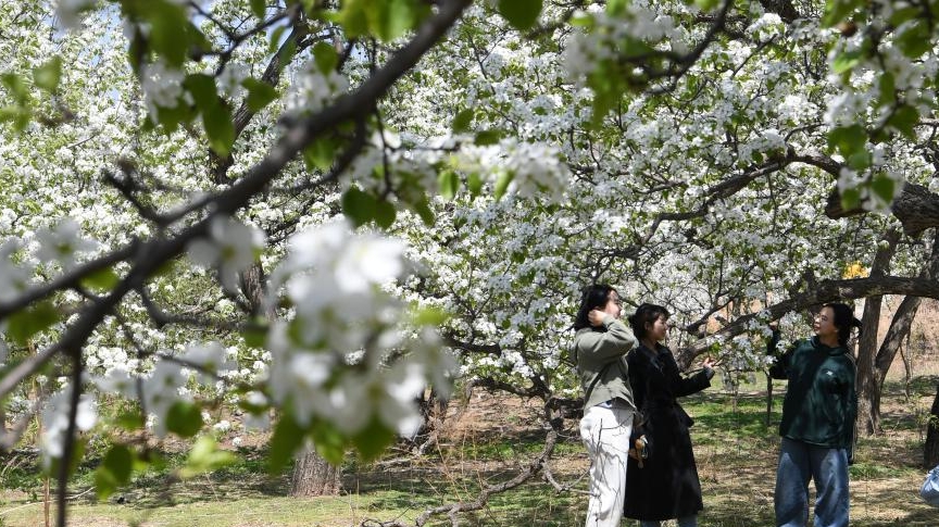 Gansu : les poiriers en fleurs de Shichuan attirent de nombreux visiteurs