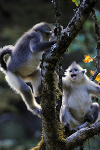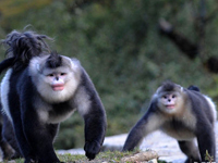 Le rhinopithèque doré du Yunnan (singe au nez retroussé) est une espèce de singe vivant exclusivement en Chine et menacée d'extinction. Il est considéré comme « trésor national », au même titre que le panda géant. Le nombre total de rhinopithèques dorés du Yunnan, animaux vivant dans les forêts et montagnes des régions nord-ouest de la province du Yunnan et dans certaines régions du Tibet, n'est aujourd'hui que de 2 000 individus.