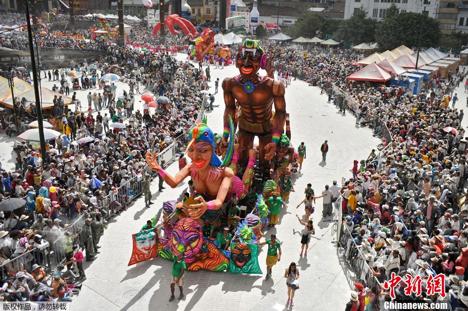当地时间2013年1月6日,哥伦比亚Pasto,黑白狂欢节大游行。黑白狂欢节被联合国评为世界文化遗产。
