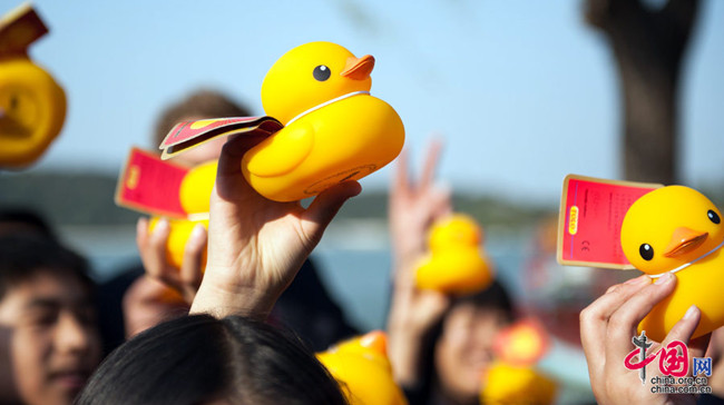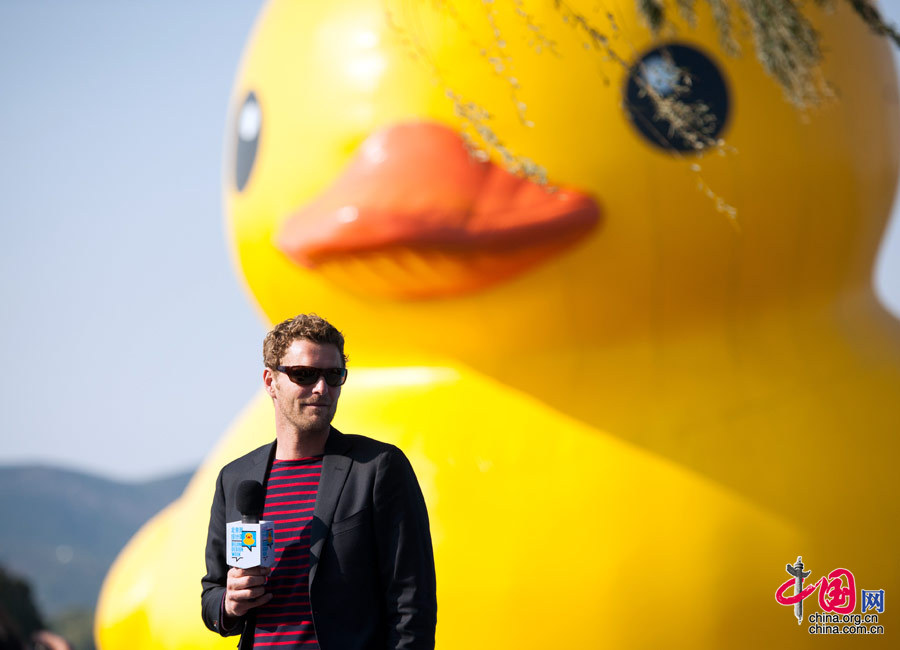 Le 24 octobre, à quelques jours de la fin de l'escale en Chine du désormais célèbre canard en caoutchouc géant, une cérémonie de départ a été organisée au Palais d'été, en présence entre autres de son concepteur Florentijn Hofman, de la super-star Jackie Chan et des lauréats de la Design Week de Beijing. Le canard globe-trotter quittera le Palais d'été le 27 octobre.