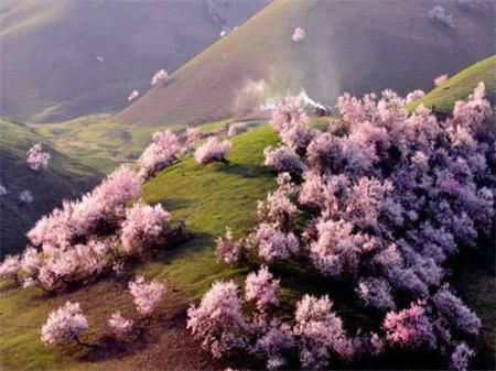 En mars : la vallée des fleurs d'abricotiers (Xinghua gou) de Yili