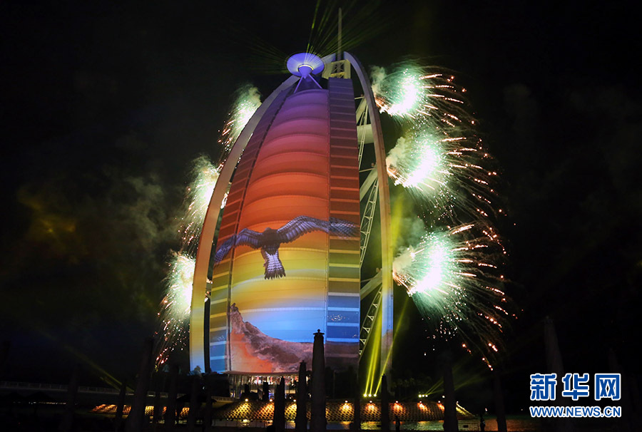 - Afin de célébrer son 15e anniversaire et le 43e anniversaire de la fondation des Emirats arabes unis, l'hôtel Burj Al Arab de Dubaï a présenté hier soir un grand spectacle de feux d'artifice, lancés depuis sa plage privée.