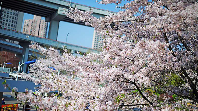 近日,上海南浦大桥下的浦西公交枢纽站走红网络,站内樱花盛开,美不胜收,被网友誉为上海"最美公交车站"。如今,站内十多棵樱花树全面盛开,公交车进站的时候犹如驶入一片粉白色的花海,美不胜收。许多市民特意来此赏樱,并用手机、相机记录下这美妙的春日景致。