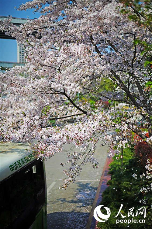 French.china.org.cn | Mis à jour le 02. 04. 2015 | Mots clés : Shanghai ,arrêt de bus ,cerisiers
