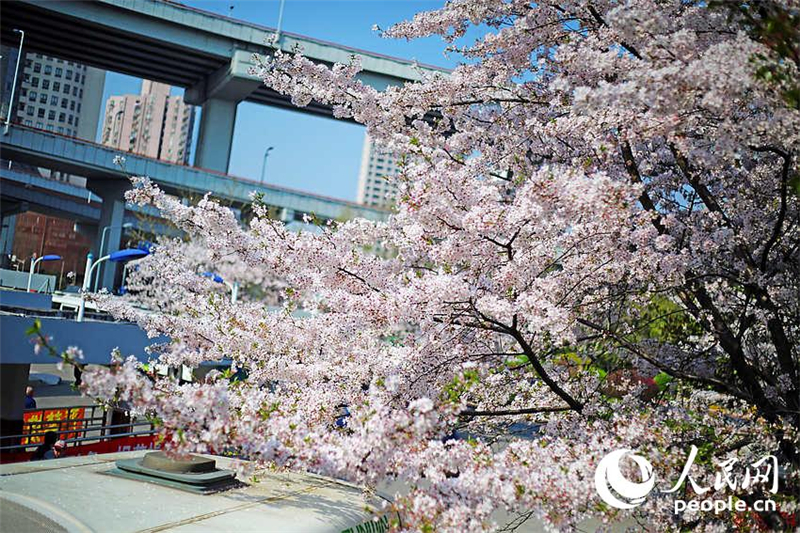 French.china.org.cn | Mis à jour le 02. 04. 2015 | Mots clés : Shanghai ,arrêt de bus ,cerisiers