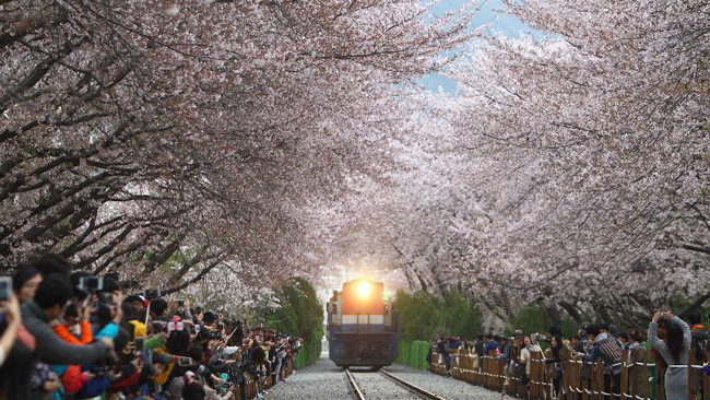 4月1日至10日,韩国南部的昌原市举行第53届镇海军港樱花节,吸引大批游客前来参观。