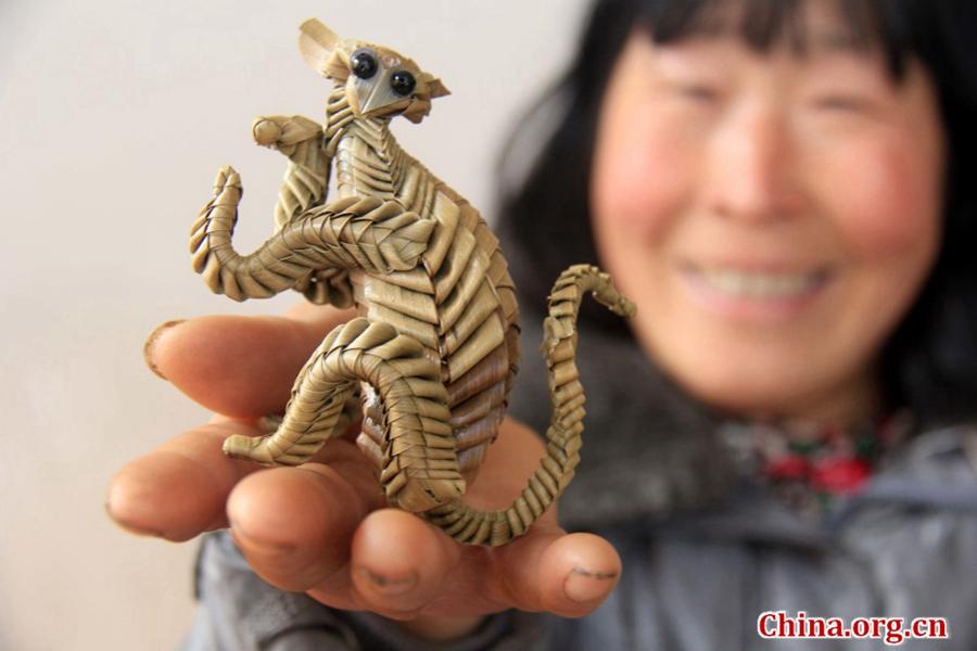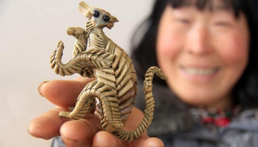 Tang Yunlun est un habitant âgé de 50 ans du village de Gaoling à Lianyungang, dans la province du Jiangsu. Il est célèbre pour son style unique de paille tressée, un savoir-faire transmis dans sa famille de génération en génération. M. Tang a commencé à apprendre cet art à l'âge de cinq ans. Il s'est spécialisé dans le tressage de fleurs, d'oiseaux, de poissons et d'insectes avec de la paille, des peaux de haricots et des feuilles artificielles. Ses produits sont de très haute qualité et sont même vendus en Corée du Sud. A quelques semaines de l'année du Singe, selon le calendrier lunaire chinois, M. Tang a réalisé une série spéciale pour l'occasion.
