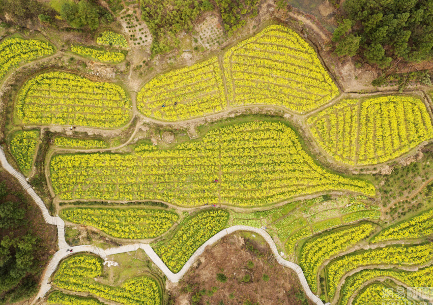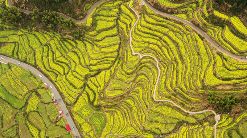 - Vu du ciel : la floraison dans les champs de colza en terrasses de Wuyuan