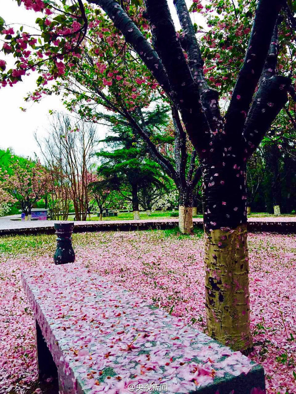 - Le 3 mai, la pluie et le vent ont balayé la ville de Dalian dans la province du Liaoning (nord), faisant tomber les fleurs des cerisiers ornementaux par milliers sur le sol.