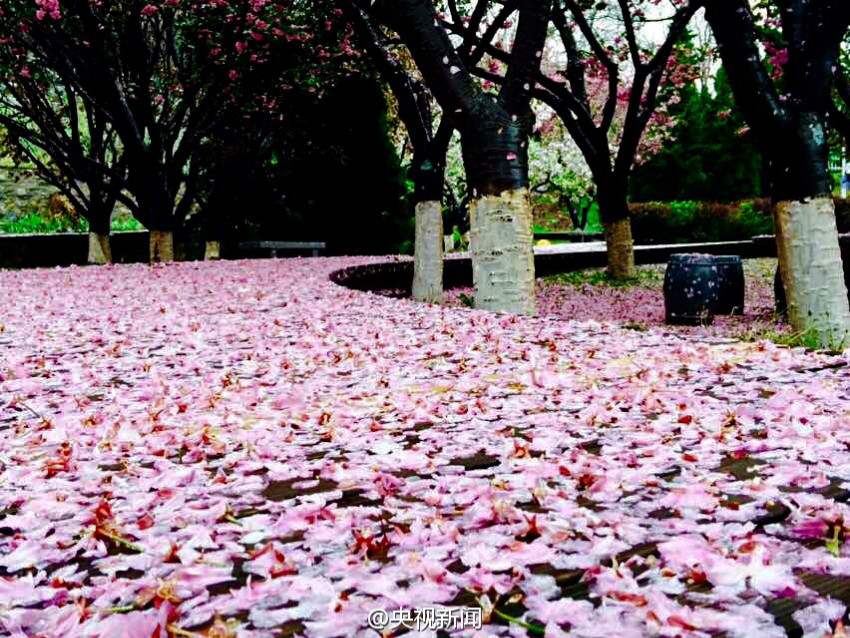 - Le 3 mai, la pluie et le vent ont balayé la ville de Dalian dans la province du Liaoning (nord), faisant tomber les fleurs des cerisiers ornementaux par milliers sur le sol.