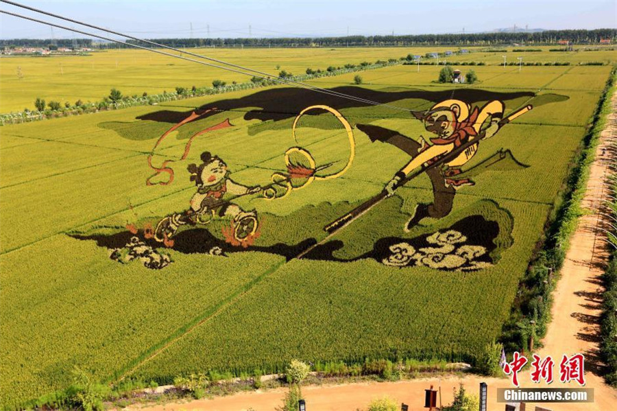 - Le 22 août, les dessins en 3D au milieu des rizières ont accueilli la saison touristique à Shenyang, dans la province du Liaoning. On y trouve des dizaines de dessins, dont Le Roi des singes
