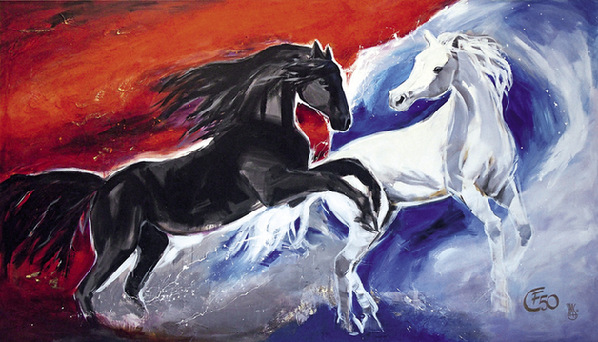 Avec l'influence de la culture chinoise, il ajoute beaucoup d'éléments typiques chinois dans ses peintures. Ses voyages dans tout le pays lui offrent la possibilité de dessiner et photographier de nombreux merveilleux paysages de différentes régions. Il a déjà traité beaucoup de sujets chinois, la Grande Muraille, le mont Qingcheng, le mont Huangshan, le mont Leshan et les montagnes et les rivières de Guilin. Ses œuvres témoignent également de la pensée philosophique traditionnelle, comme la philosophie du feng shui, du qi et le yin et le yang. Les nombres porte-bonheur lui servent aussi dans ses compositions. « Si je peins un groupe de chevaux, j'essaie d'en représenter un nombre exprimant le bonheur ou la richesse pour les Chinois, comme les nombres six ou huit. »