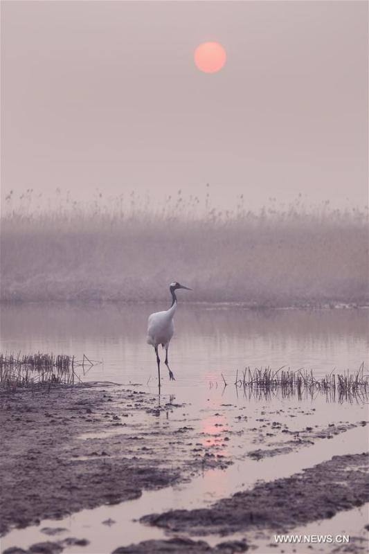 Des grues à couronne rouge aperçues dans une réserve naturelle nationale de l'Est de la Chine