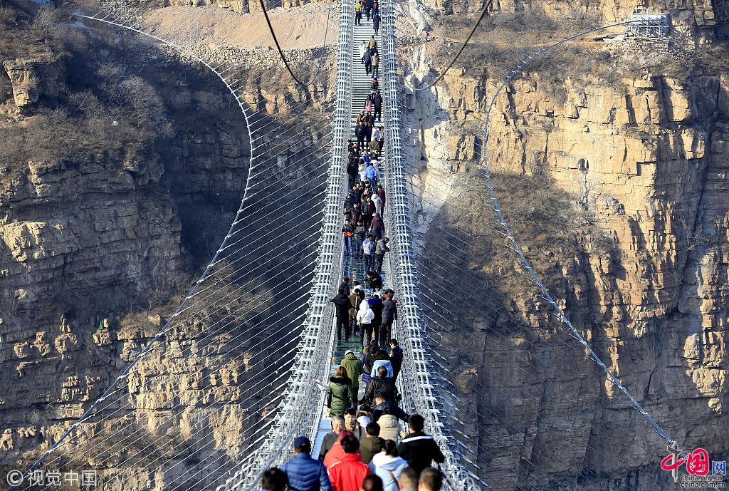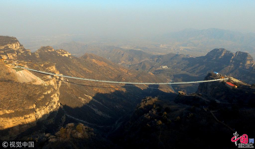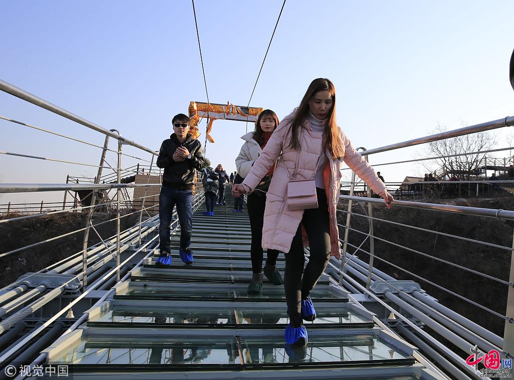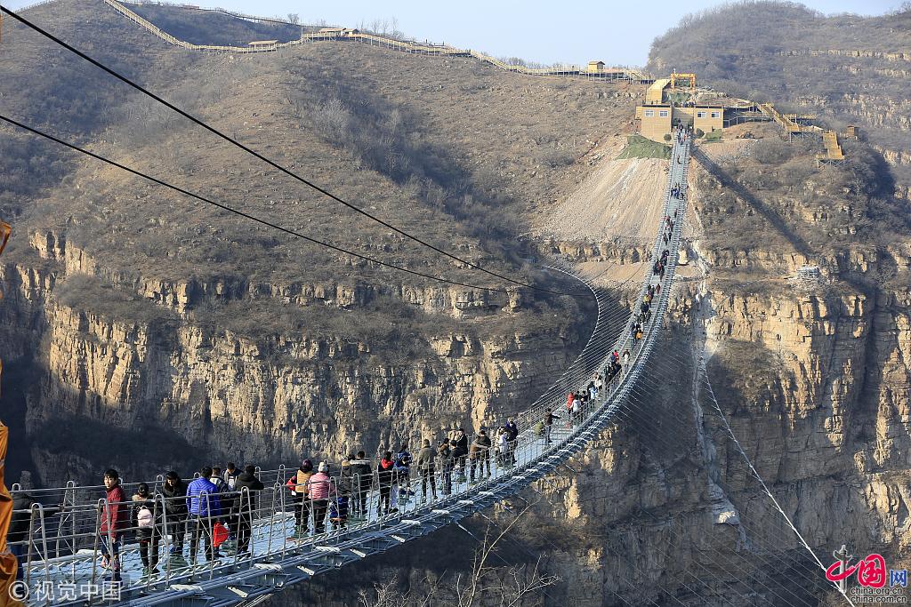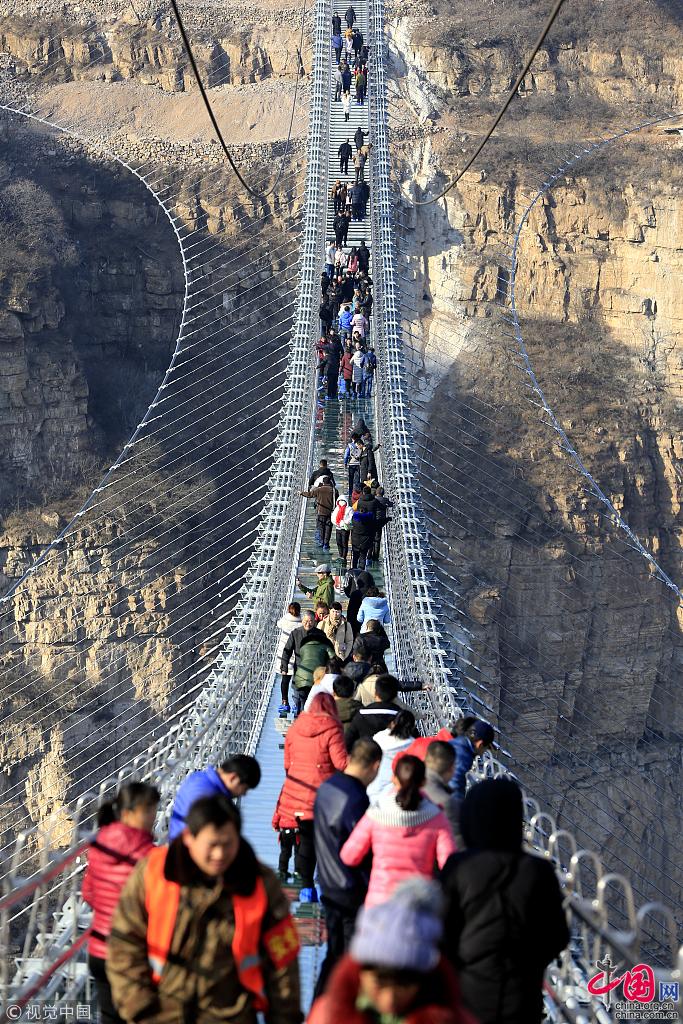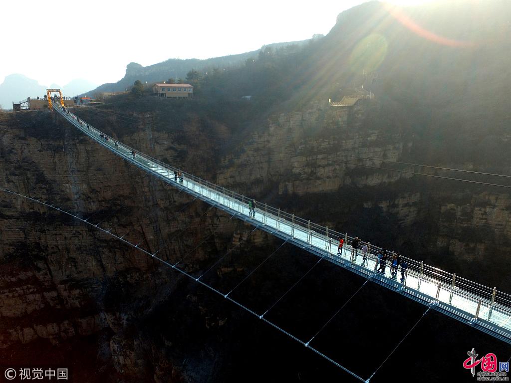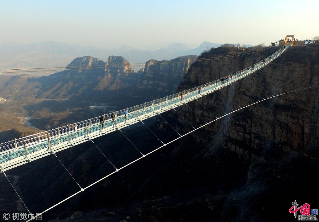 Un pont suspendu en verre a récemment ouvert au public sur le site touristique de Hongyagu, au district de Pingshan, dans la province du Hebei.