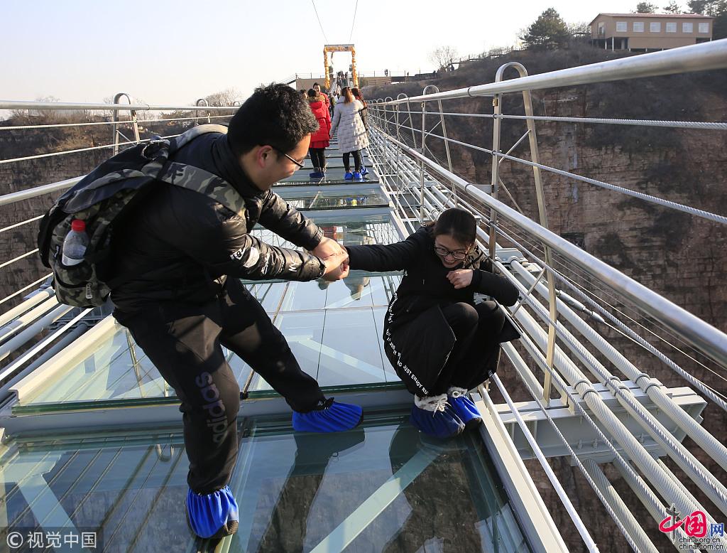 Ouverture d'un pont suspendu en verre dans le nord de la Chine