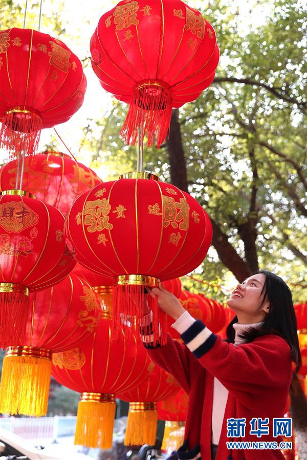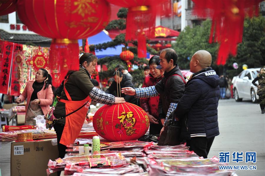 Le 13 février, des habitants achètent des lanternes rouges dans le xian de Huangping, dans la province chinoise du Guizhou.