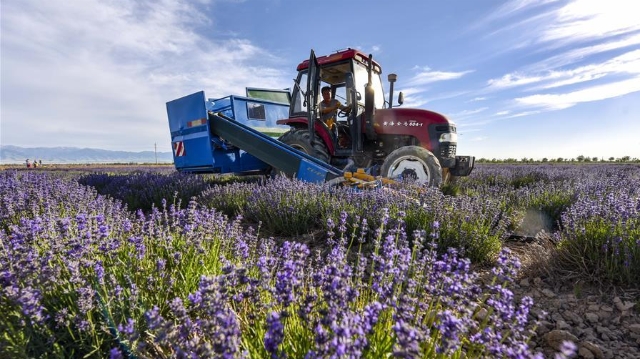 Photo prise le 27 juin, montrant des milliers de lavandes en pleine floraison dans la vallée de la rivière Ili, dans la région autonome ouïghoure du Xinjiang, qui est le principal centre de production de lavande de Chine. Située sur la même latitude que la Provence, Ili est connue comme la troisième plus grande zone de production de lavande du monde entier.