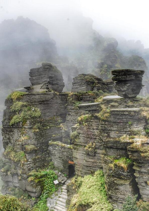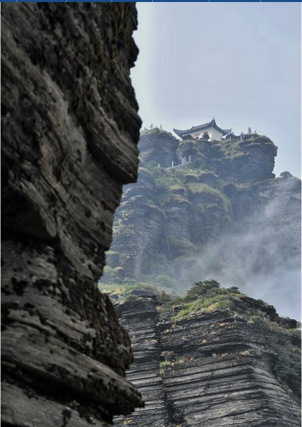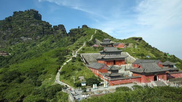 Photo prise le 29 août 2016, montrant le paysage du mont Fanjingshan, situé dans la ville de Tongren, dans la province du Guizhou (sud-ouest de la Chine). Le mont Fanjingshan a été inscrit sur la Liste du patrimoine mondial le 2 juillet 2018 lors de la 42e réunion du Comité du patrimoine mondial à Bahreïn. L'écosystème de Fanjingshan a préservé un grand nombre de plantes reliques anciennes, de créatures rares et en voie de disparition, ainsi que des espèces uniques. (Xinhua / Yao Lei)