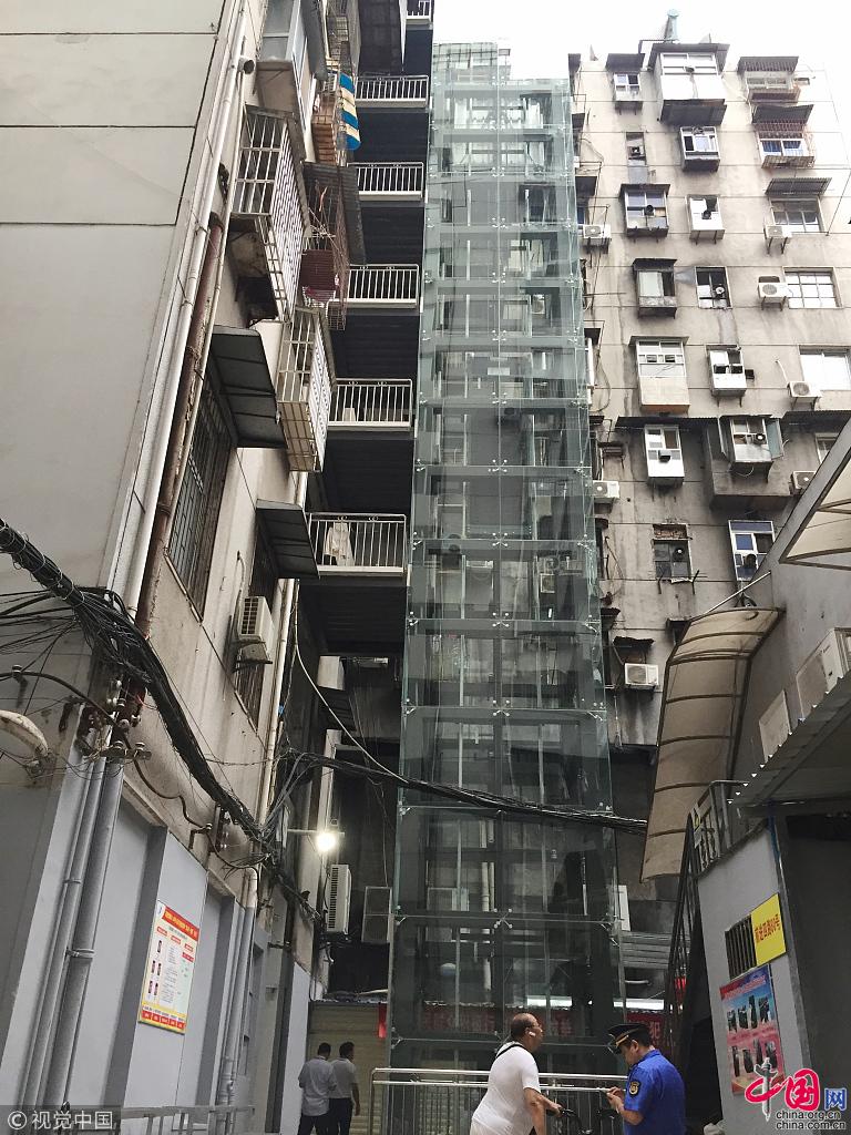 Le 8 août, un ascenseur dans une structure en verre se dresse devant un vieil immeuble de 10 étages dans le district de Jianghan à Wuhan (Hubei). Les résidents se sont cotisés et ont pu réunir 850 mille yuans, soit environ 107 mille euros, pour installer cet ascenseur qui facilite maintenant la vie des 136 foyers de l’immeuble, dont plus de 70 % ont dépassé la soixantaine.